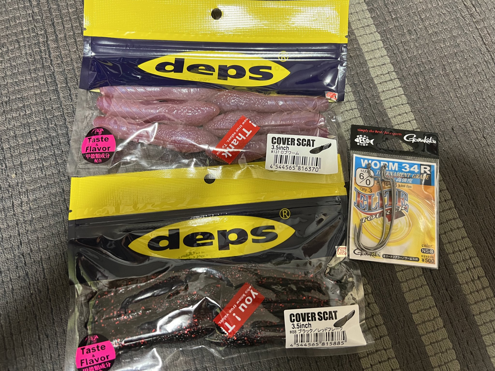 というわけで、推奨フックのワーム314Rの6/0にカバースキャット3.5をリグります。